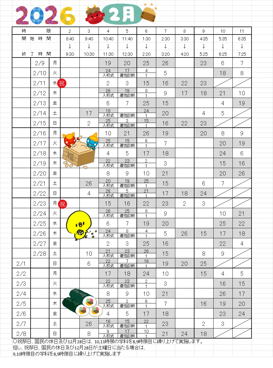 2月学科予定