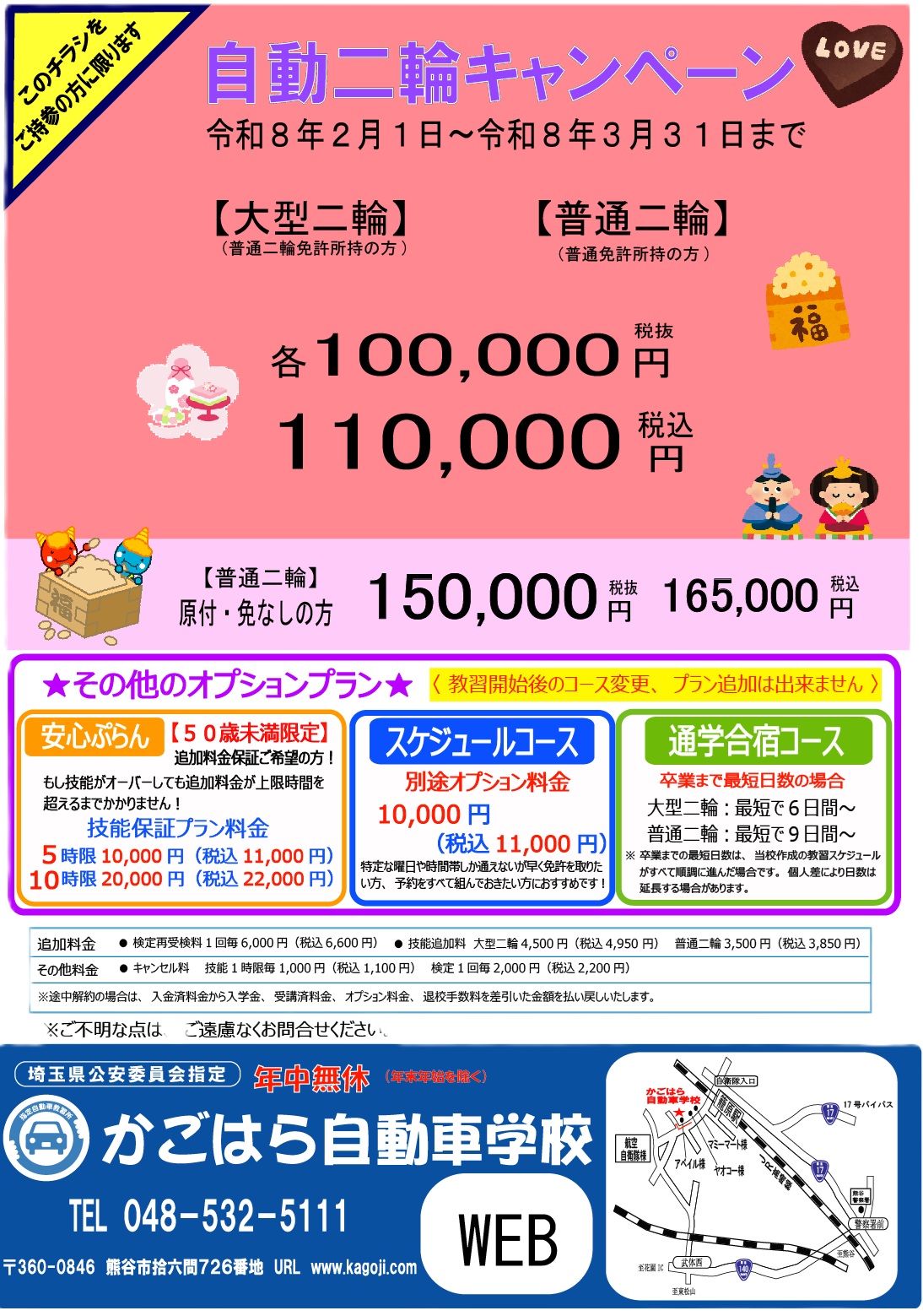 Share this post Share on FacebookShare on Facebook TweetShare on Twitter Post navigationPreviousPrevious post:中型・けん引・大型特殊キャンペーン(令和8年3月31日まで)NextNext post:4月学科予定関連記事中型・けん引・大型特殊キャンペーン(令和8年3月31日まで)2026年3月1日