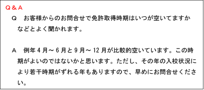 Details11月2日(日)は二輪安全講習を教習所内で実施するために、 午前中の教習・検定・学科・入校式は実施いたしません。 午後から教習しますが、送迎バスは終日運休なのでご注意ください。
